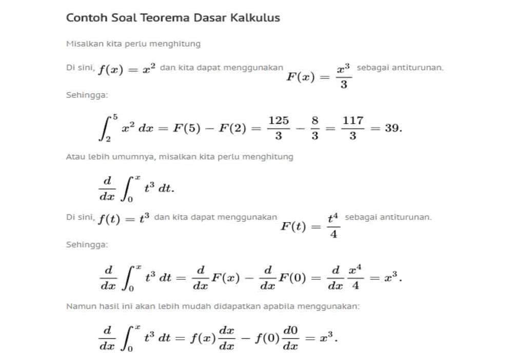 Misalkan f adalah fungsi bernilai real yang kontinu, didefinisikan pada sebuah interval tertutup [a, b]. Misalkan juga F adalah fungsi yang didefinisikan, untuk semua x pada [a, b], dengan